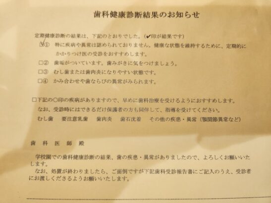 問題ない今だからこそ、歯科医院での定期検診を受け、慣れておくというのはいかがでしょうか?